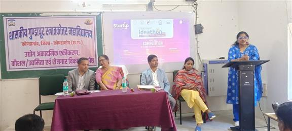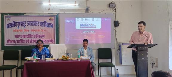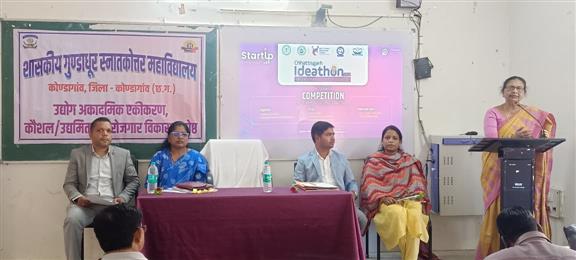 शासकीय गुण्डाधुर स्नातकोत्तर महाविद्यालय, कोंडागांव में प्राचार्य डॉ. सरला आत्राम के निर्देशन एवं मार्गदर्शन में उद्योग-अकादमिक एकीकरण, कौशल/उद्यमिता एवं रोजगार प्रकोष्ठ के तत्वावधान में “नवाचार एवं स्टार्टअप कार्यशाला” का सफल आयोजन किया गया। इस कार्यक्रम का उद्देश्य युवाओं में सृजनशीलता, स्वावलंबन एवं रोजगार सृजन की भावना को प्रोत्साहित करना रहा।